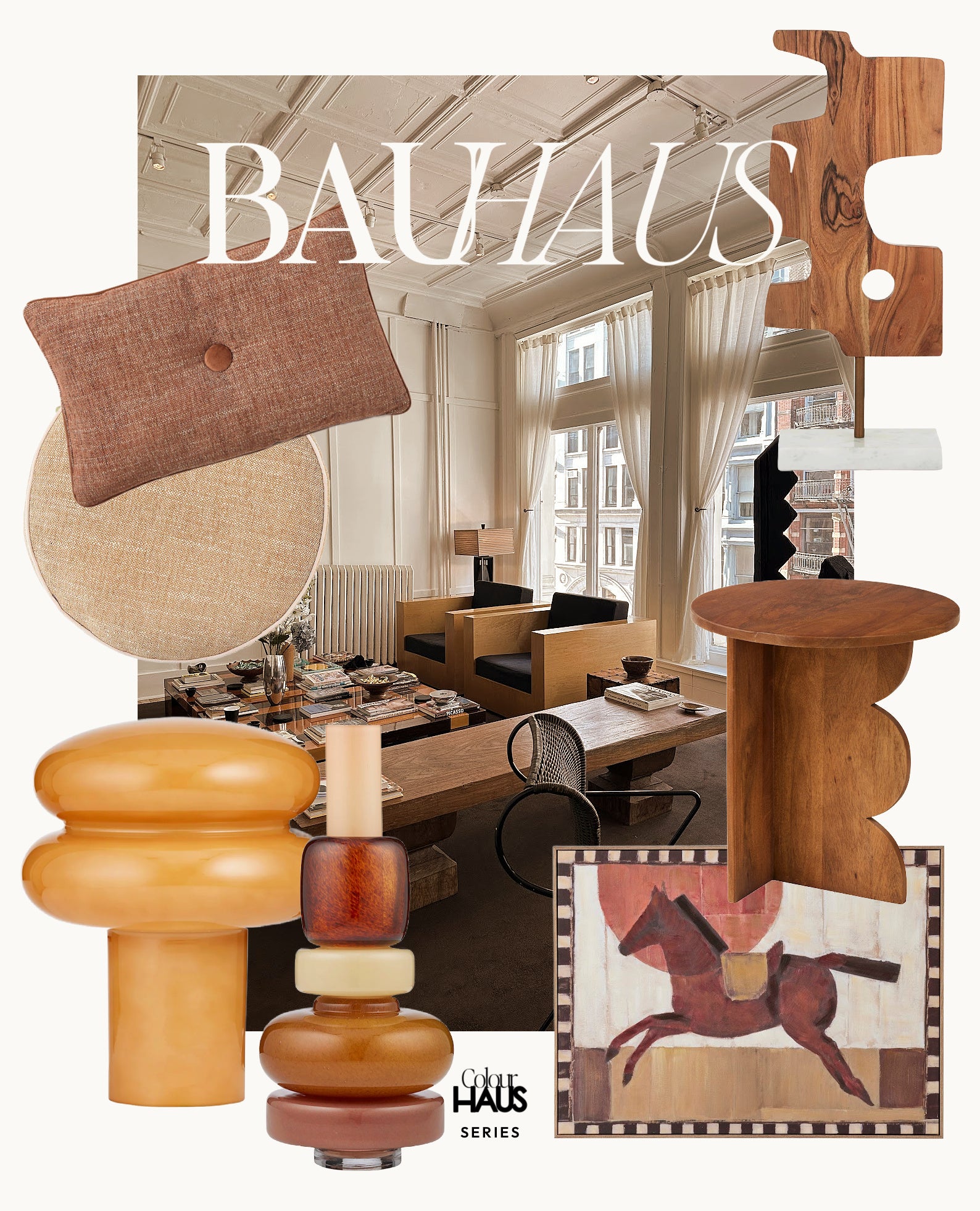 Geometry with warmth. Clean lines, honest materials, the kind of form that works because it's been thought through completely. This is what happens when Bauhaus learns to breathe ~ in amber, in timber, in the deep grain of something made to last. Sculptural form that carries the weight of real design conviction. Pieces with a silhouette so considered they could hold a room from a single shelf. This ColourHAUS Series collection is our richest, most architectural edit yet ~ objects that sit somewhere between gallery and at ease, and make that distinction feel completely at home. This is curating with style. This is the room at its most intentional.