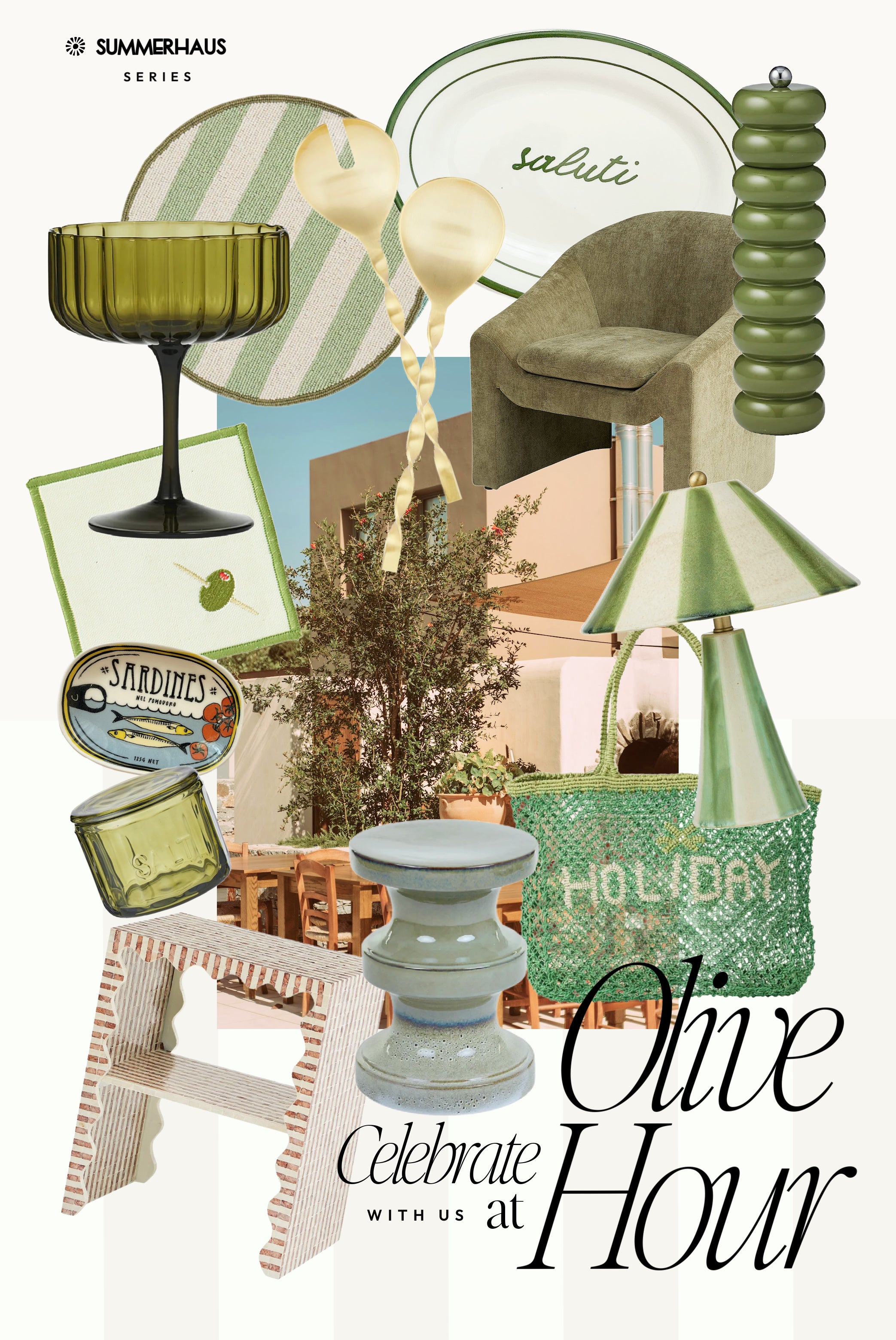 Think golden hour on a warm evening – sun dipping low, glasses clinking, everything washed in shades of green. Our Olive Hour edit is made for that moment. A little Italian holiday, poured straight into the home.