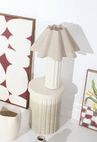 Paired with a flared fluted shade in a natural linen-style finish, Sabrina casts a warm, ambient glow - perfect for larger bedsides, console tables, or stylish workspaces. Its elevated height and organic curves suit coastal homes, modern studios, and spaces with a considered, tonal palette.