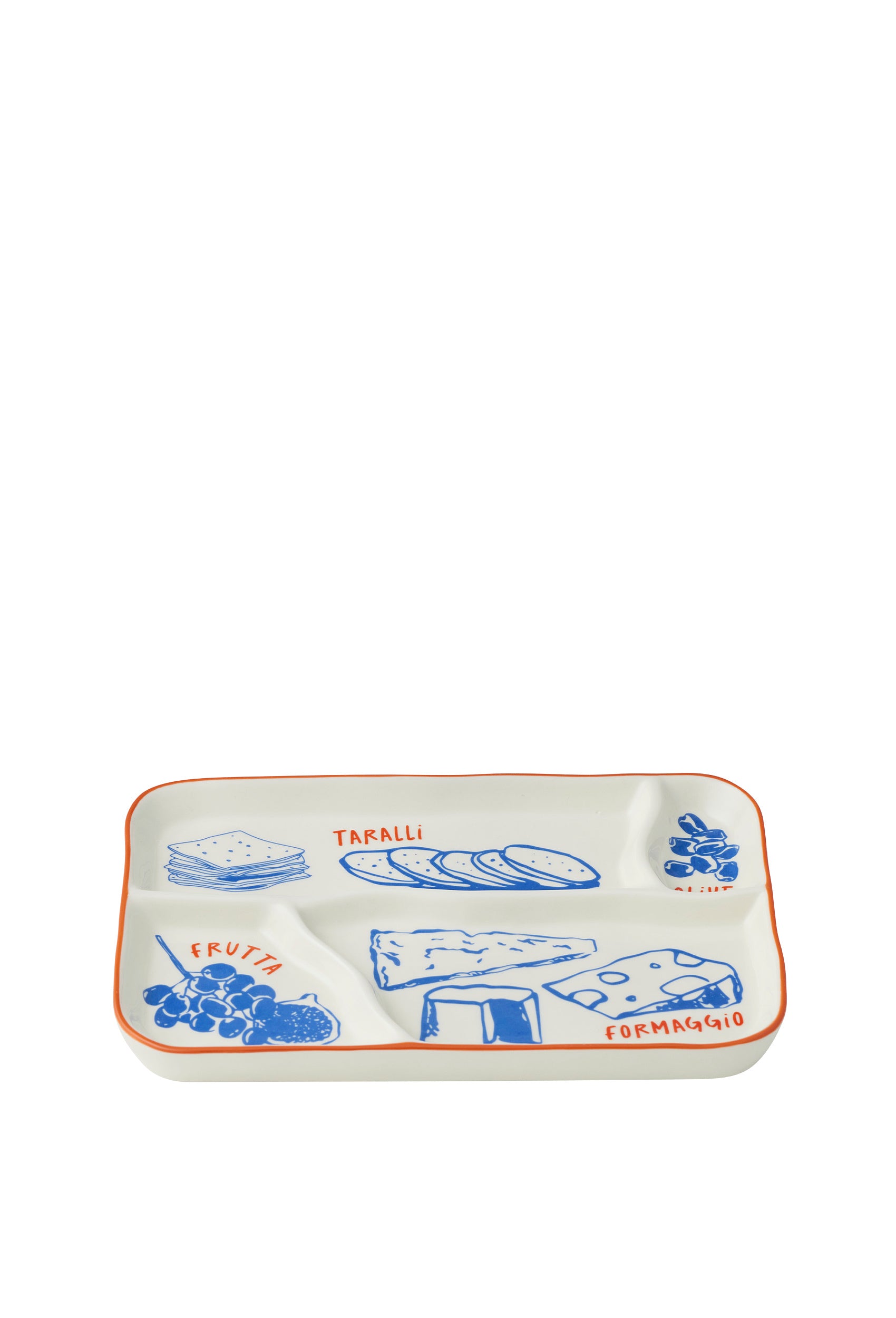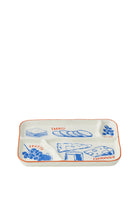 The August Ceramic Divided Cheese Platter features hand painted blue illustrations and separated sections designed for effortless grazing. Its organic, rustic finish brings a relaxed, European inspired feel to the table while keeping cheeses, accompaniments, and small bites neatly arranged. A practical piece that adds quiet charm to casual dining.