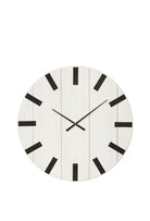 Wood wall clocks bring timeless charm to interiors, and the Hedge Block Wood Clock in white and black is a striking statement piece. Crafted from whitewashed timber with subtle panel detailing, it combines natural texture with bold black block markers and sleek clock hands for a look that is both rustic and contemporary. Perfect for kitchens, living rooms or entryways, this oversized wall clock balances practicality with style, ensuring you keep perfect time while adding a touch of modern farmhouse appeal to your home.