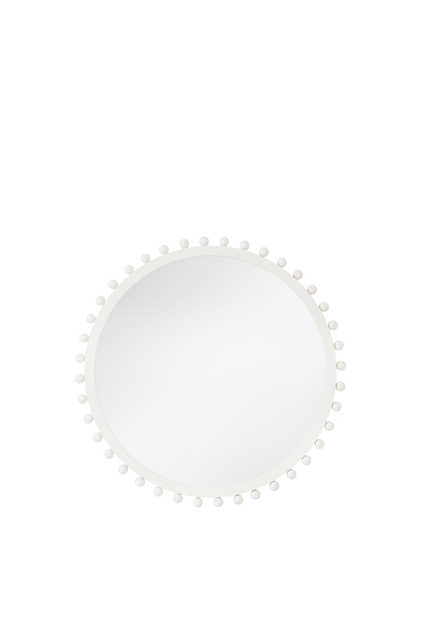 The Caitlyn Round Wood Mirror in White has a playful yet refined presence, defined by its circular silhouette and distinctive beaded frame. Each smooth sphere encircling the edge creates a sense of rhythm and texture, giving the mirror a sculptural quality that makes it stand out as more than just a functional piece. Finished in a crisp matte white, the timber frame has a clean, modern look that feels fresh and versatile. The pale tone allows it to reflect light softly, brightening a space while complementing both contemporary interiors and more relaxed coastal settings. The round shape softens harder architectural lines, creating balance and ease within the room. Perfect as a feature above a console, styled in a bedroom, or anchoring a living space, the Caitlyn Mirror enhances interiors with character, light and a touch of playful charm while remaining timeless in its simplicity.