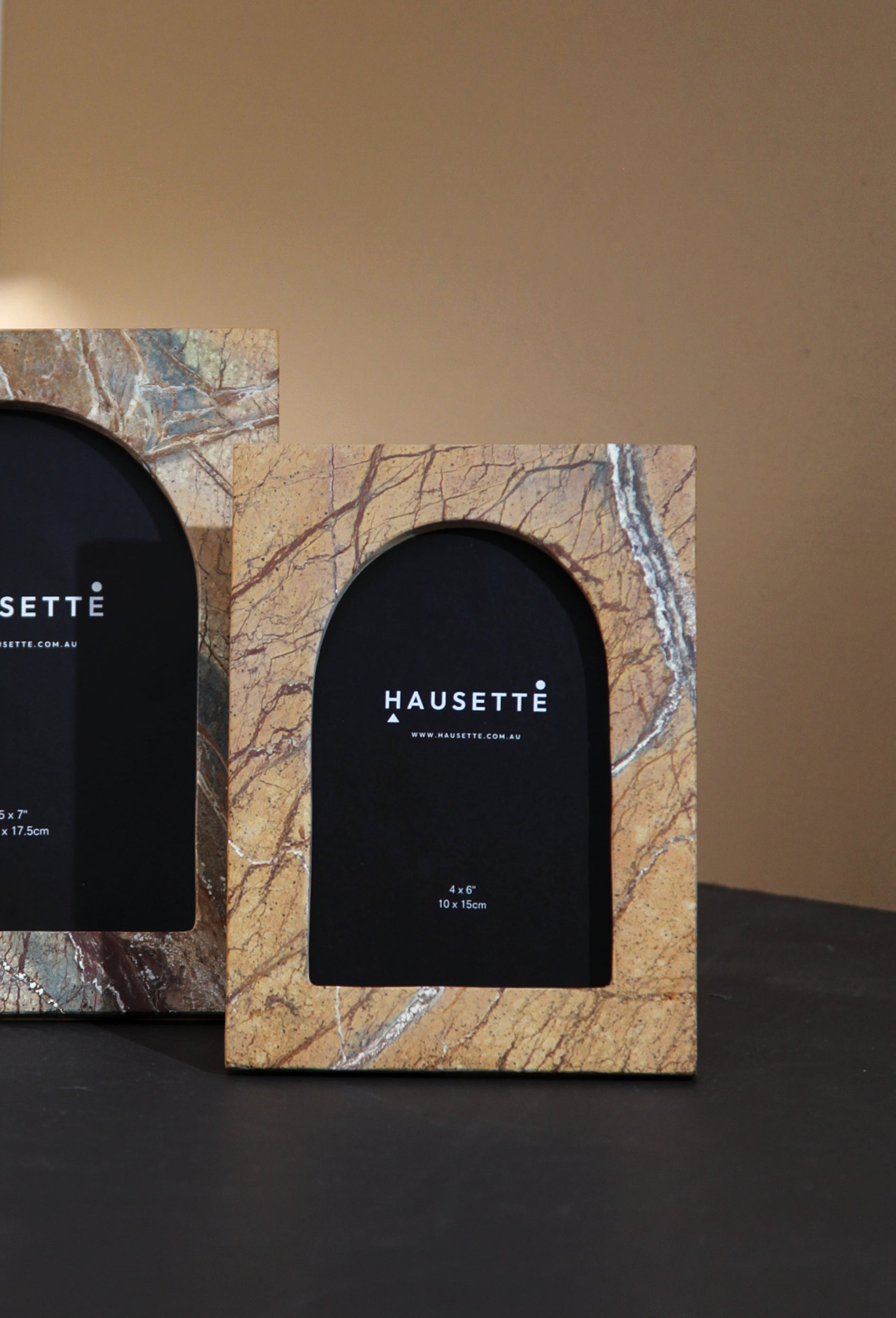Each frame features unique natural veining