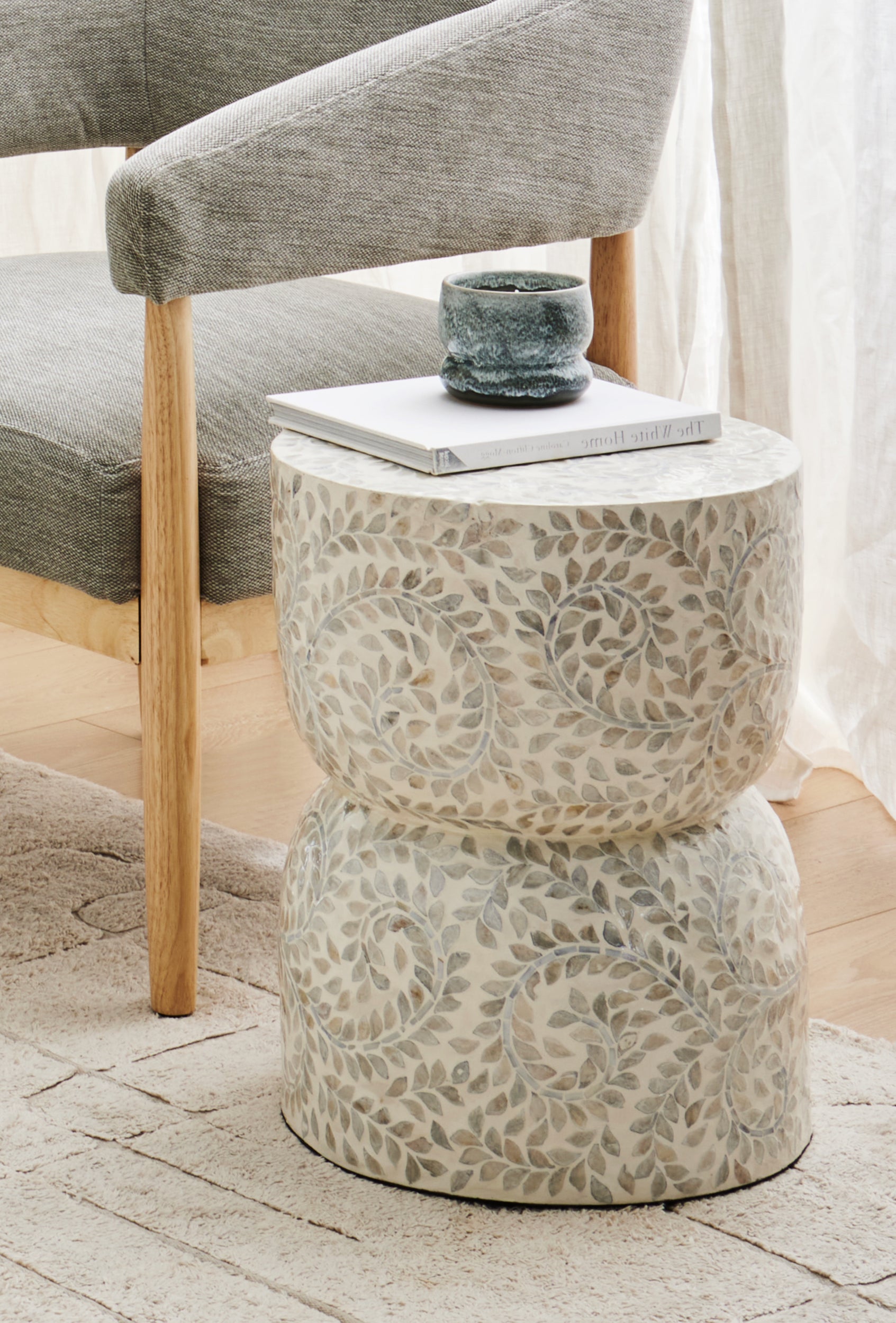 Wooden bowls with scalloped edges hold lemons gathered fresh from the tree. Translucent vases in deep green catch the light. Cabbage leaf ceramics bring playful elegance to the table, while marble trays and resin pieces wait to be filled with moments of gathering.