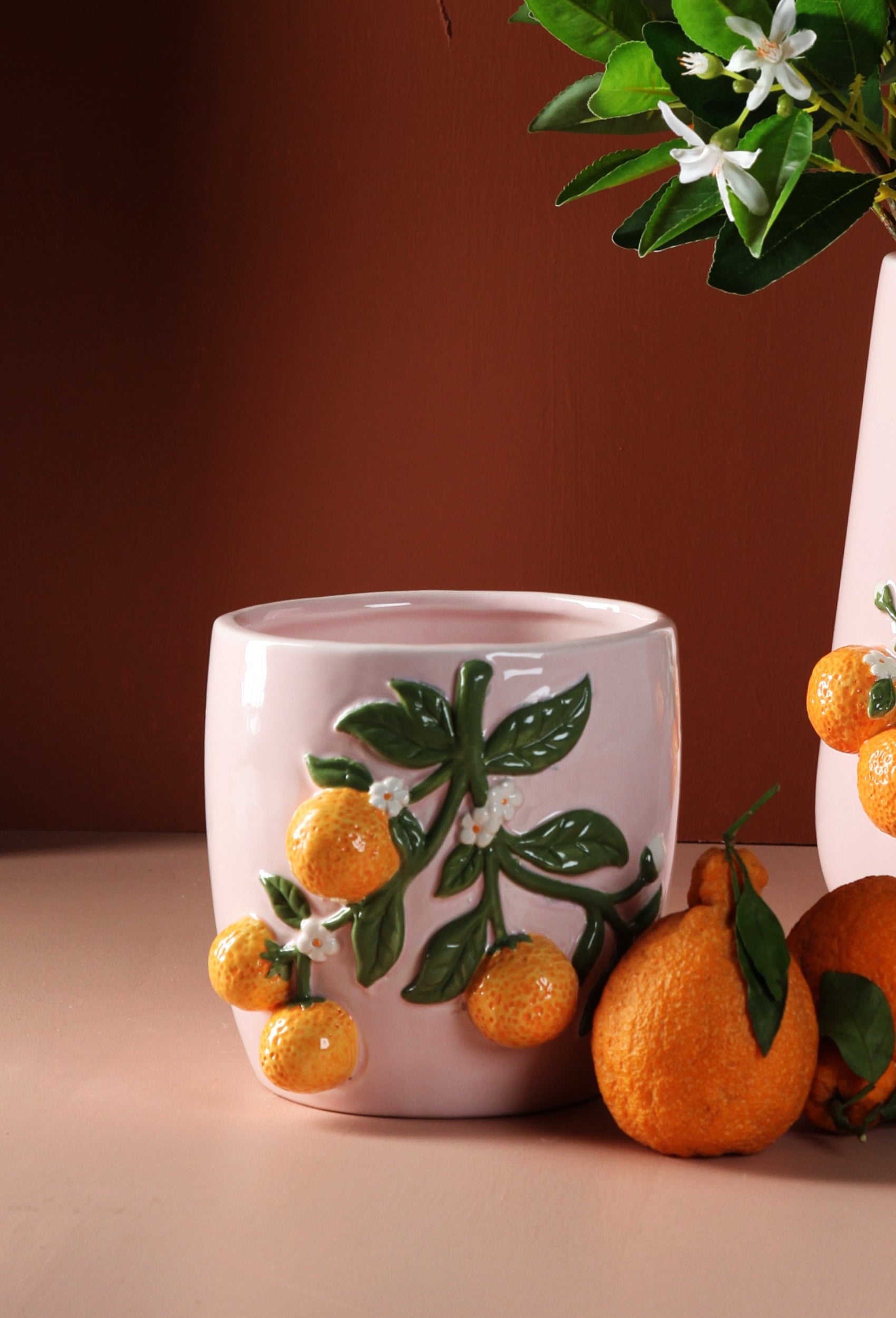 Wooden bowls with scalloped edges hold lemons gathered fresh from the tree. Translucent vases in deep green catch the light. Cabbage leaf ceramics bring playful elegance to the table, while marble trays and resin pieces wait to be filled with moments of gathering.