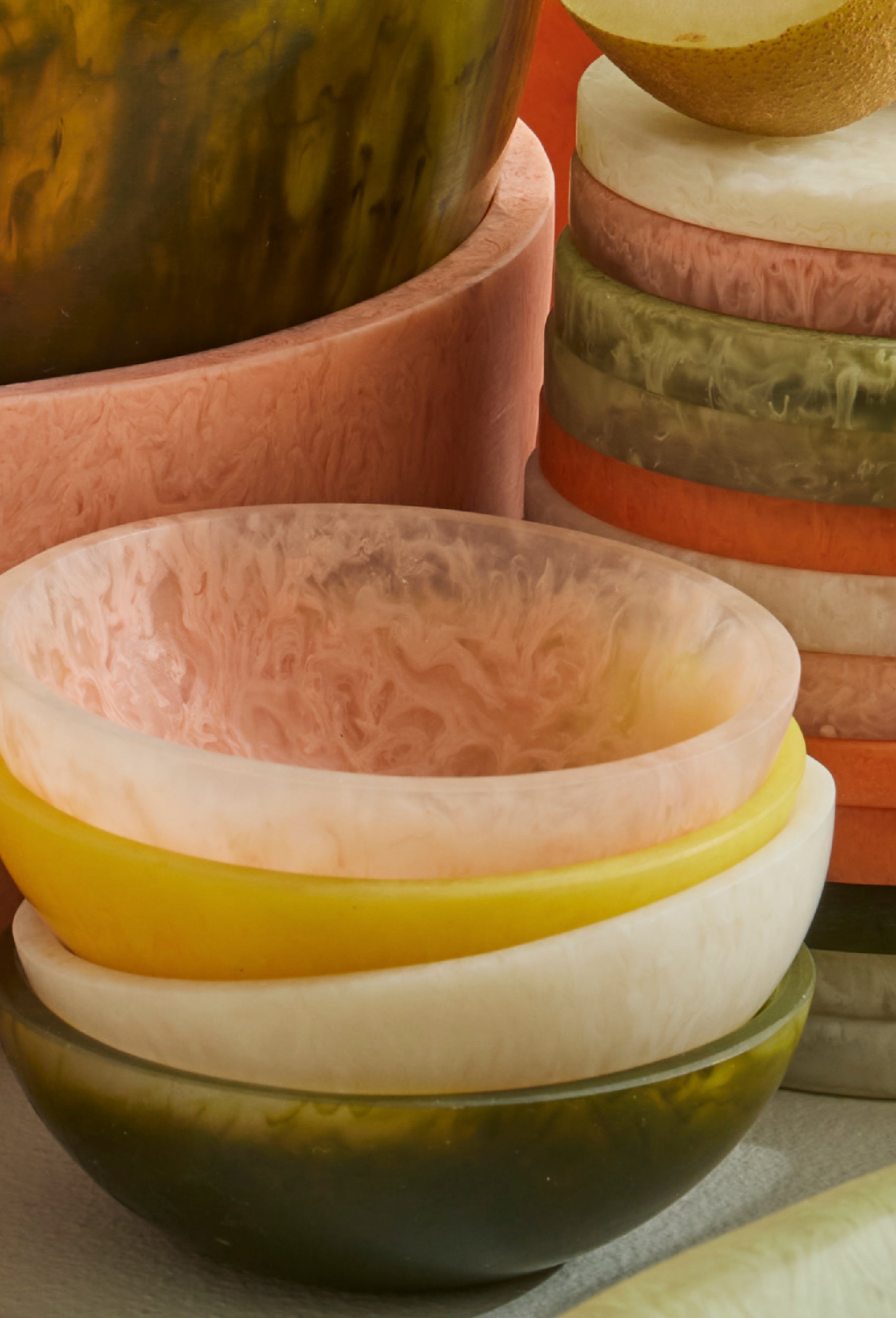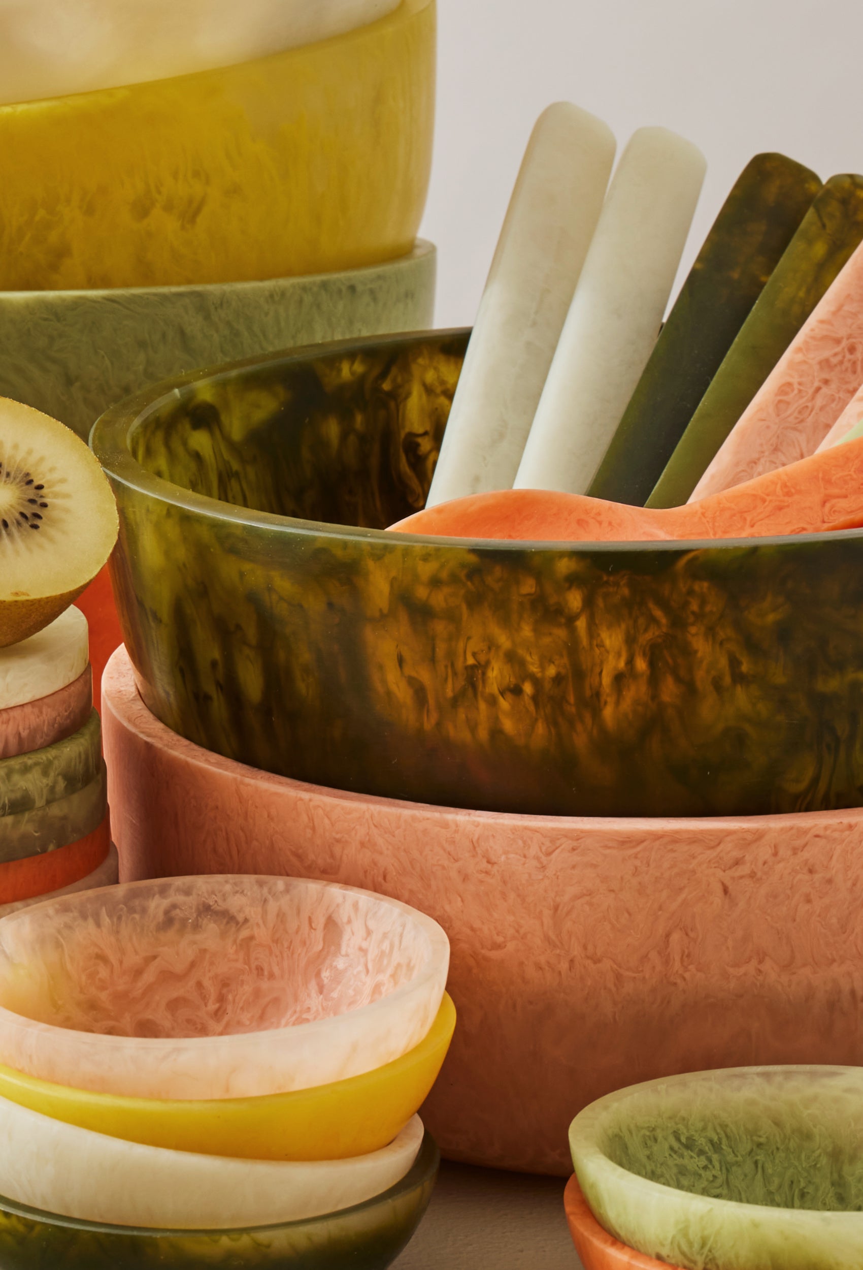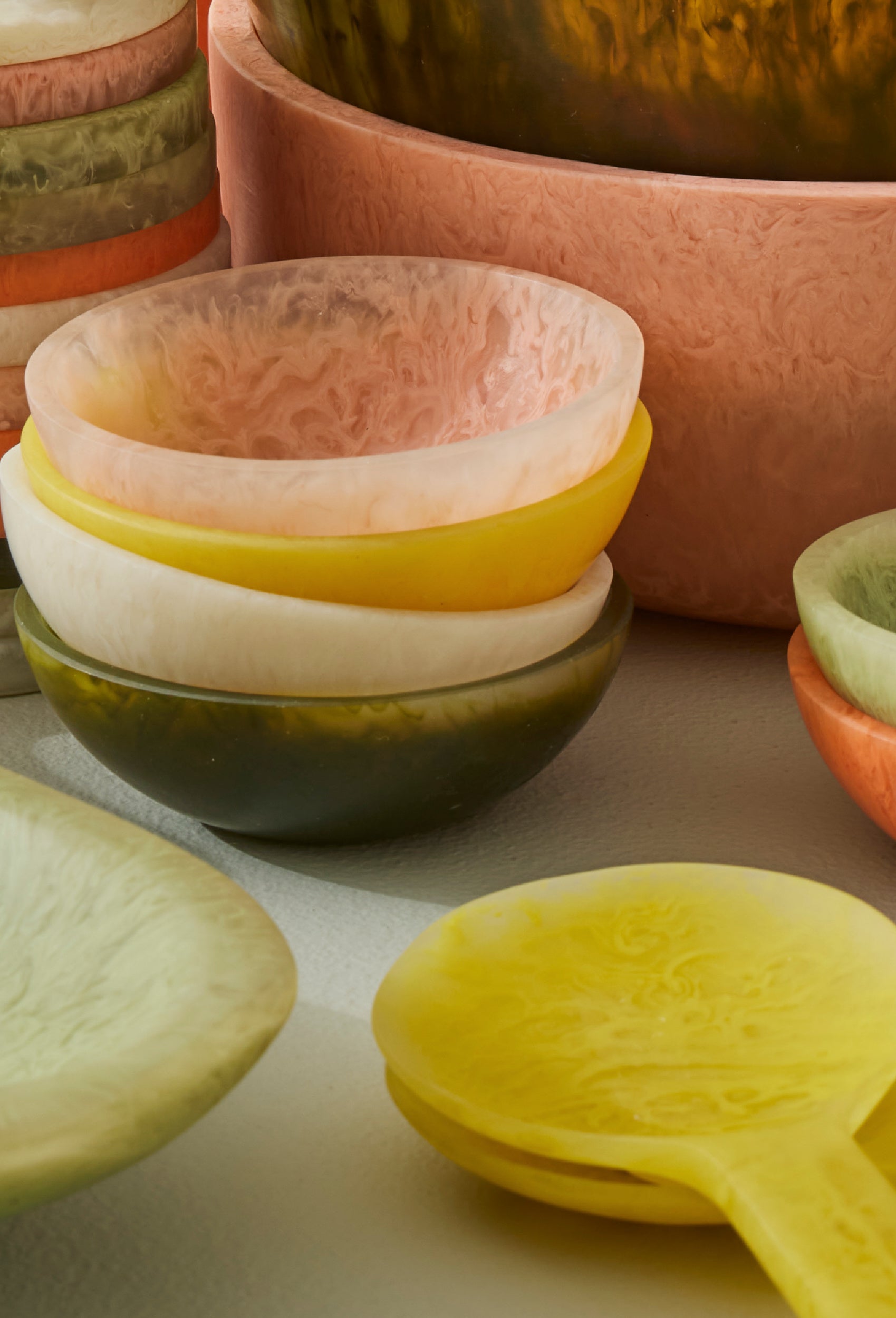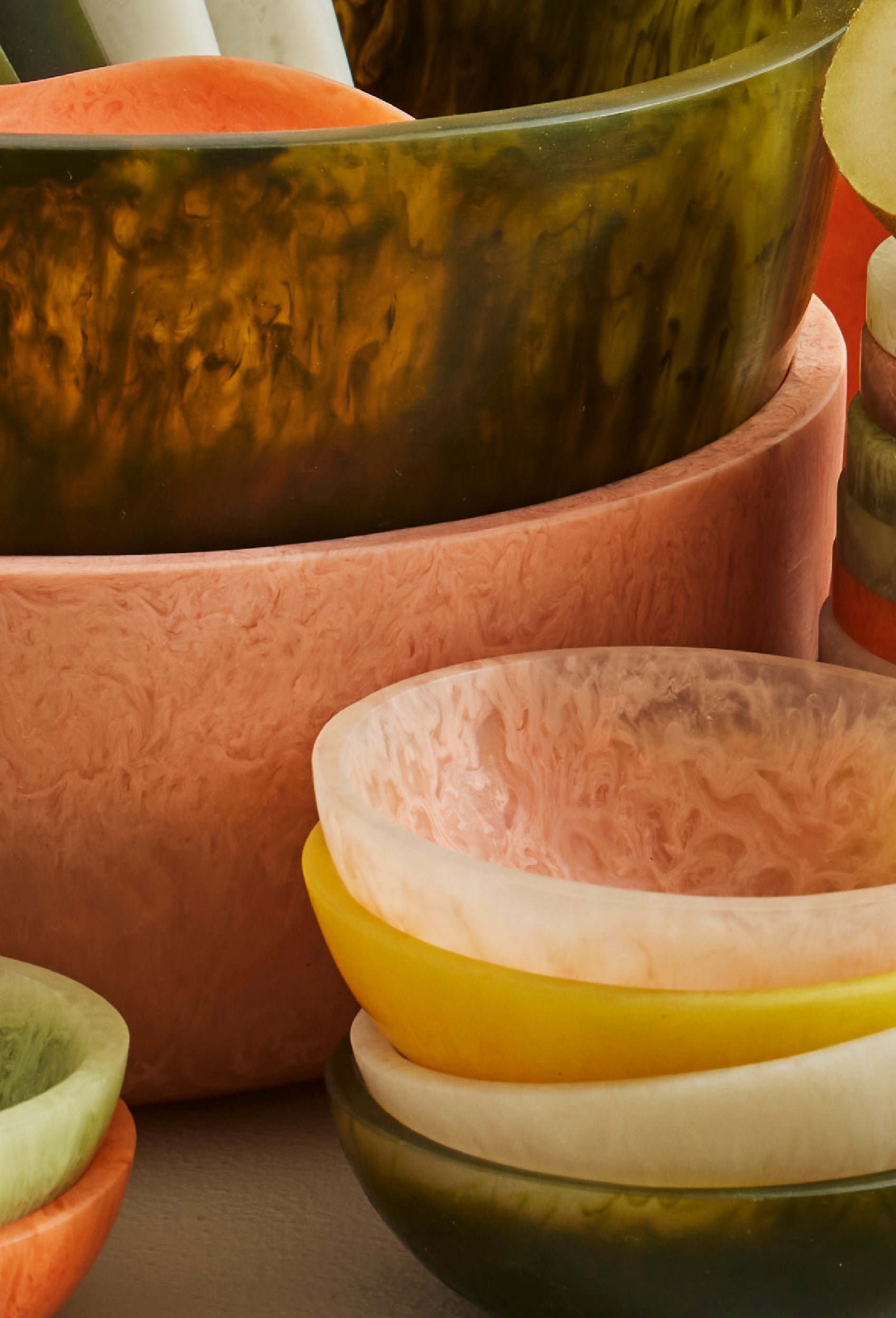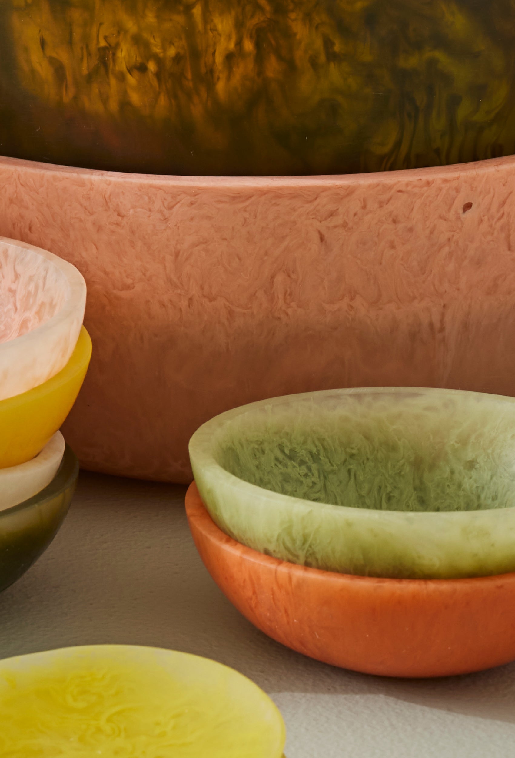 Bold colour, fluid form. The Resin Colour Collection is a curated edit of rich, organic shaped resin pieces for serving, styling, and statement-making at home. Each item is uniquely marbled with vibrant tones and organic shapes - no two exactly the same. Designed to bring artful impact to everyday moments, from the table to the shelf.